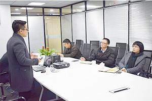2月21日,寧波市經(jīng)信委戴主任、市經(jīng)信委軟件處蘇處長和鄞州區(qū)智慧辦張主任等一行人一起來到甬潤進(jìn)行指導(dǎo)工作,總經(jīng)辦劉總和張總進(jìn)行了接待。 下午四點,戴主任一行準(zhǔn)時來到了甬潤科技。雙方在簡短的介紹之后,劉總先是帶著大家參觀了